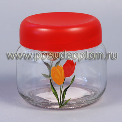 Тр 131790 Банка для сыпучих продуктов с пласт. кр. Тюльпан, 400 мл, т.м. Renga