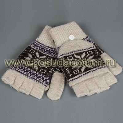 Кт RHN004 Перчатки-варежки женские бежевые с рисунком, т.м. "ТВОЙ ЦВЕТ"
