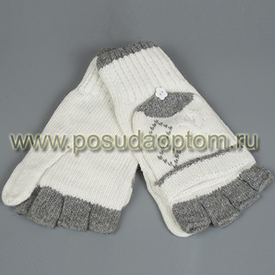 Кт RХНМ001 Перчатки-варежки бело-серые, т.м. "ТВОЙ ЦВЕТ"