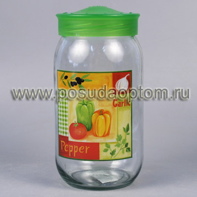 Тр 131371 Банка для сыпучих продуктов с пласт. кр. Перцы, зеленая, 1000 мл, т.м. Herevin