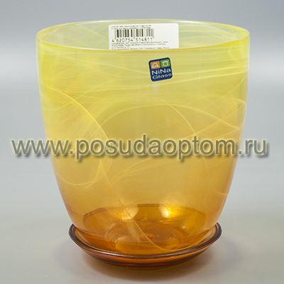 НЗ 93-027 (АКр) Горшок для цветов с поддоном № 4, d-15,8 см, 2,0 л, желто-оранжевый, т.м. NiNa Glass